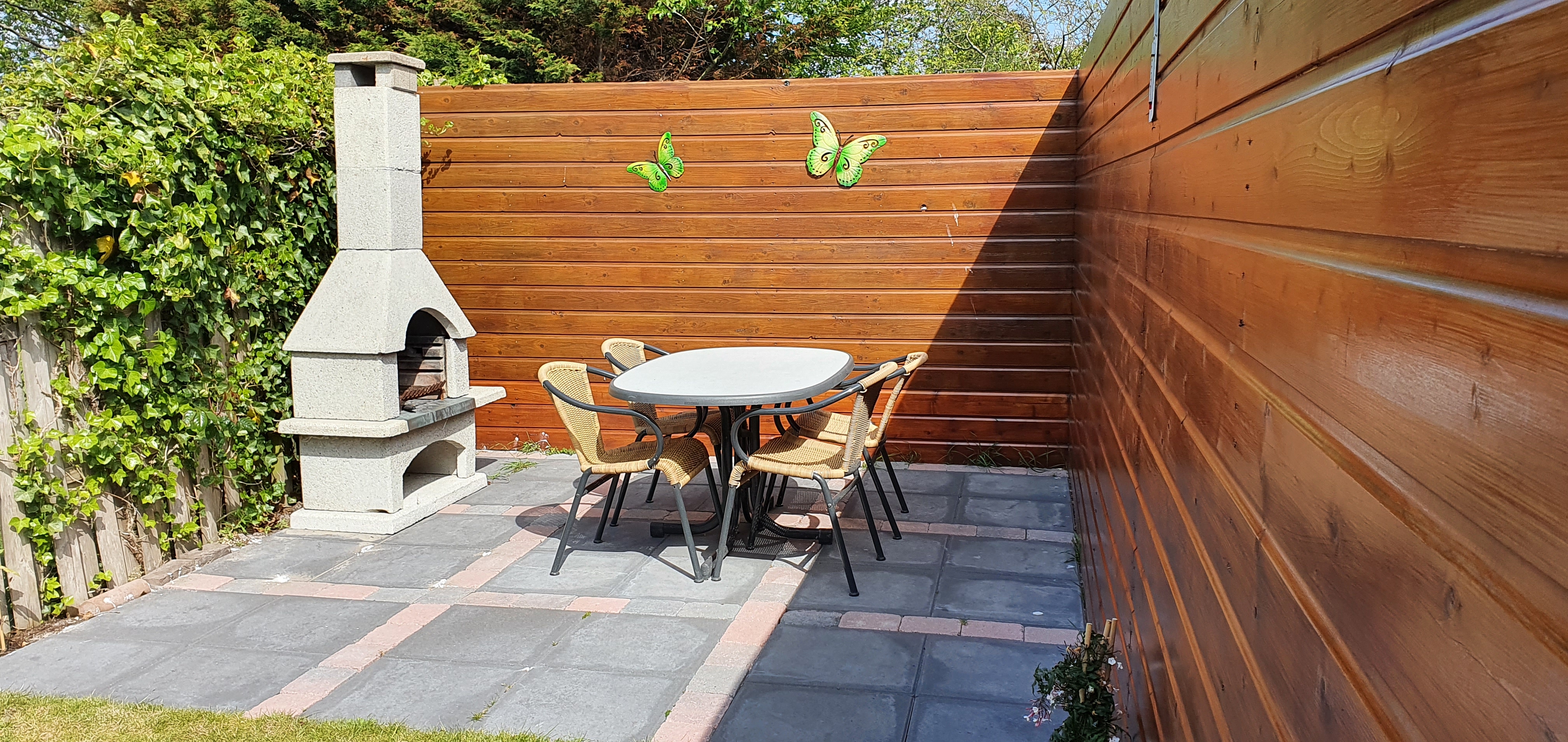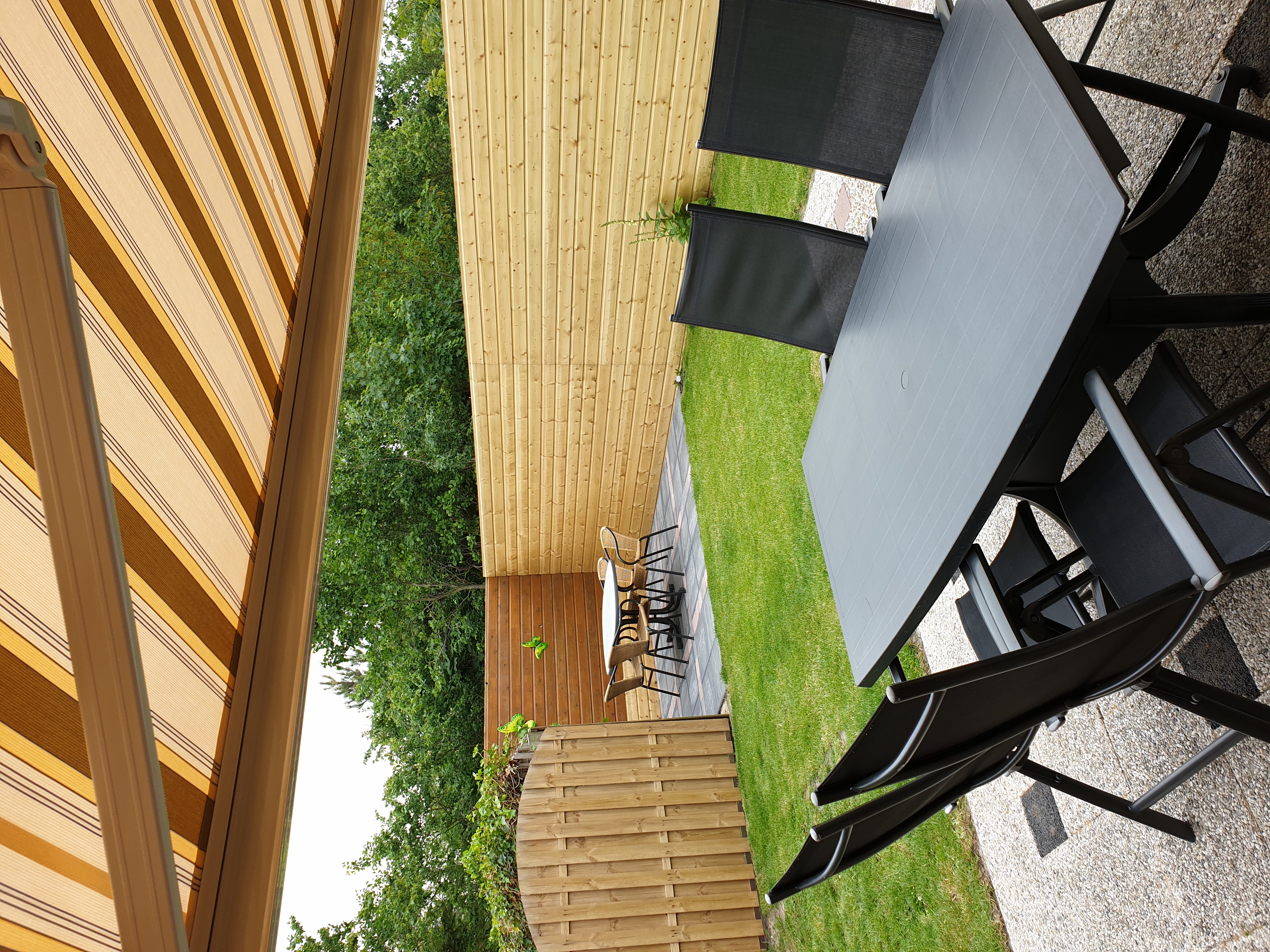 Er is een beschutte, geheel omheinde, tuin met terras voorzien van tuinmeubelen en een extra terras met een vaste barbecue. De berging deelt u met de gasten van de Karekiet.